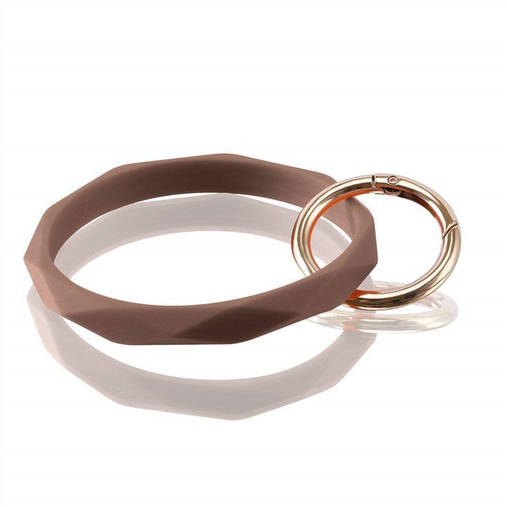 Keychain braslè silicone a fèt ak silikon manje-wo kalite, ki pa gen okenn BPA, epi li trè an sekirite pou kontakte po. Braslèt kle a dirab ak konfòtab pou mete.